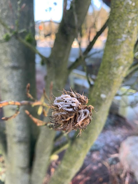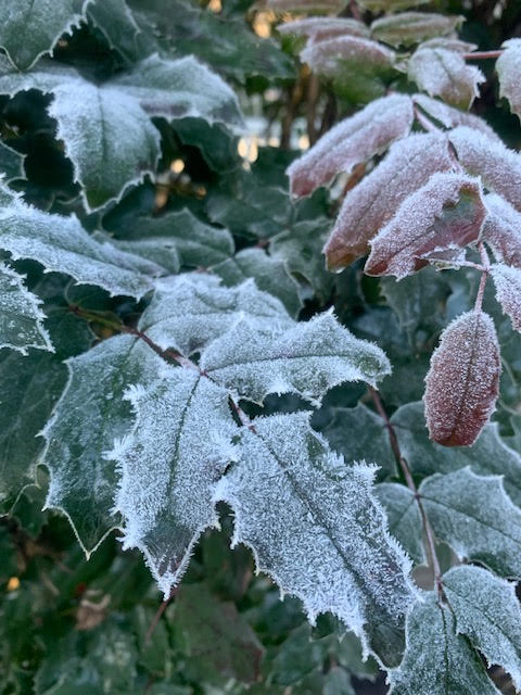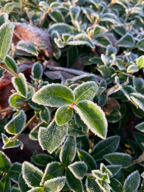 Then you also miss out on aestethics! You see that clearly this week with temperatures dipping below zero overnight; and north facing, shady areas staying cold all day. When you walk out you see plants covered in frost and they look amazing.